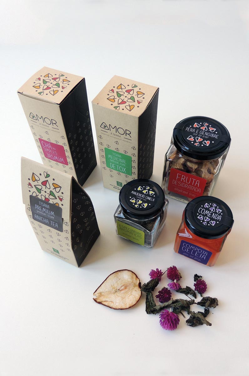 Ninguém pode alterar a Natureza, mas todos podem melhorá-la.” Foi com este provérbio tradicional português que iniciámos a pesquisa gráfica da “Amor à Terra”. Uma simpática empresa de produtos naturais onde os seus participantes vivem a filosofia que praticam. Sob a chancela de “Produtos Naturais da Arrábida” não vale a pena ir à procura de produtos fora de época ou super aditivados. Aqui temos o melhor da natureza nas proporções correctas… “aquilo que a terra nos dá” – referem em uníssono os sócios. Só assim faz sentido (pensamos nós), por amor à terra. O Conceito. Associámos um modelo gráfico de um coração inspirado numa folha para fazer o paralelismo entre naming e a marca. Packaging. O desafio – criar uma embalagem para todas as famílias de chás (Simples, Medicinal e Premium). Baseado num objecto paralelepipédico, construímos uma caixa que se adapta aos diferentes volumes de produtos e pesagens.