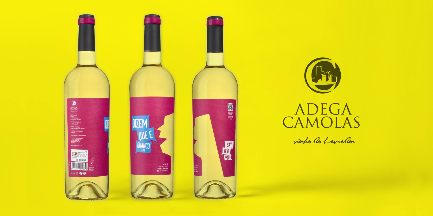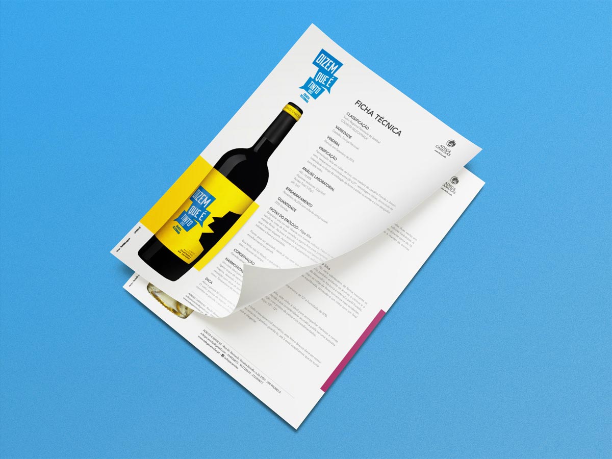 O desafio era claro: um novo vinho com nome arrojado e que precisava de uma imagem que o acompanhasse. Dirigido a um público jovem o Dizem Que É marca pela diferença. Rótulo aberto com uma silhueta que fala, nos balões de fala apresenta-se o nome do vinho e que é tinto. Numa analogia e brincadeira de uma boa conversa sobre a mesa acompanhada de uma bom vinho, essa foi a premissa para a criação da marca, rótulos e packaging Dizem Que É. O uso de cores fortes, foram pensadas para criar contraste com a cor do vinho na garrafa e fazer que esta se destaque nas prateleiras dos pontos de venda. A caixa de transporte de duas garrafas, acompanha a estética diferenciadora. Imagem coesa do principio ao fim, era o objectivo.