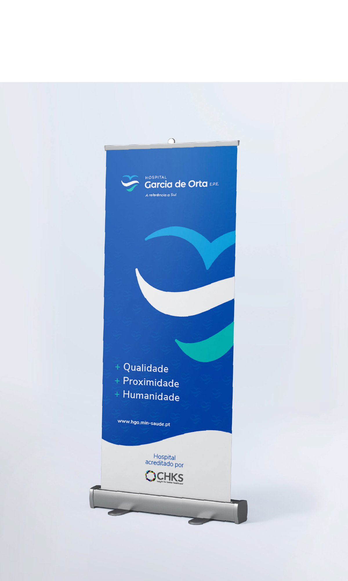 Os valores de uma marca devem ser emocionais e representativos da estrutura e envolvente da instituição que representa. Talvez por isso seja tão difícil redesenhar uma identidade. O Rebranding implica sempre uma total entrega da parte da agência para com o cliente, sobretudo para uma entidade com 30 anos de existência. É fulcral entender o seu funcionamento, respeitar o passado para poder potenciar o futuro. Tem até a capacidade e o poder de moralizar equipas, clarificar o negócio e até tornar a entidade mais transparente e acessível. Para o Hospital Garcia de Orta E.P.E. era fulcral manter presente a sua ligação e proximidade ao rio Tejo e, de forma a humanizar a marca, representamos os elementos numa forma de coração, dando-lhe uma nova vida. Em co-autoria com o Conselho de Administração, a frase que acompanha o logo permite acelerar a percepção do caminho da marca, posicionando-a no mercado – A referência a Sul.