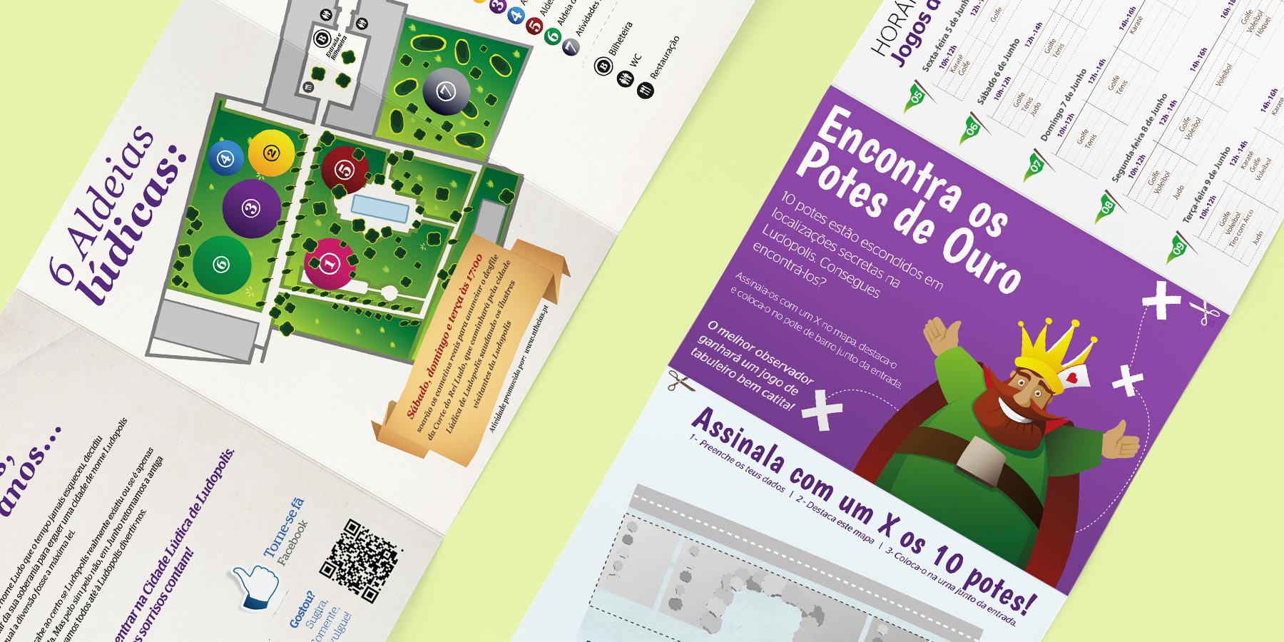 Ludopolis – Festival dos Jogos e da diversão é um festival pioneiro em Portugal, propondo uma cidade lúdica, espetacular e dinâmica cheia de jogos. Tendo como temática de fundo a Lenda da cidade Ludopolis onde “todos os sorrisos contam” e do seu rei Ludo, o festival pretende celebrar os diversos espectros do mundo dos jogos indo desde os jogos tradicionais, aos de computador e consola, tabuleiro, jogos infantis, didáticos etc.. Foi neste contexto e com uma característica tão temática que coube à Hortelã Magenta a tarefa de conceber toda a imagem e comunicação do evento. Criação do conceito gráfico, ilustração, estacionário gráfico para dos órgãos organizacionais do evento, website, página de Facebook, cartazes, outdoors, mupis, folhetos e ainda um guia explicativo do projeto e conceito Ludopolis com a finalidade de apresentar a potenciais patrocinadores.