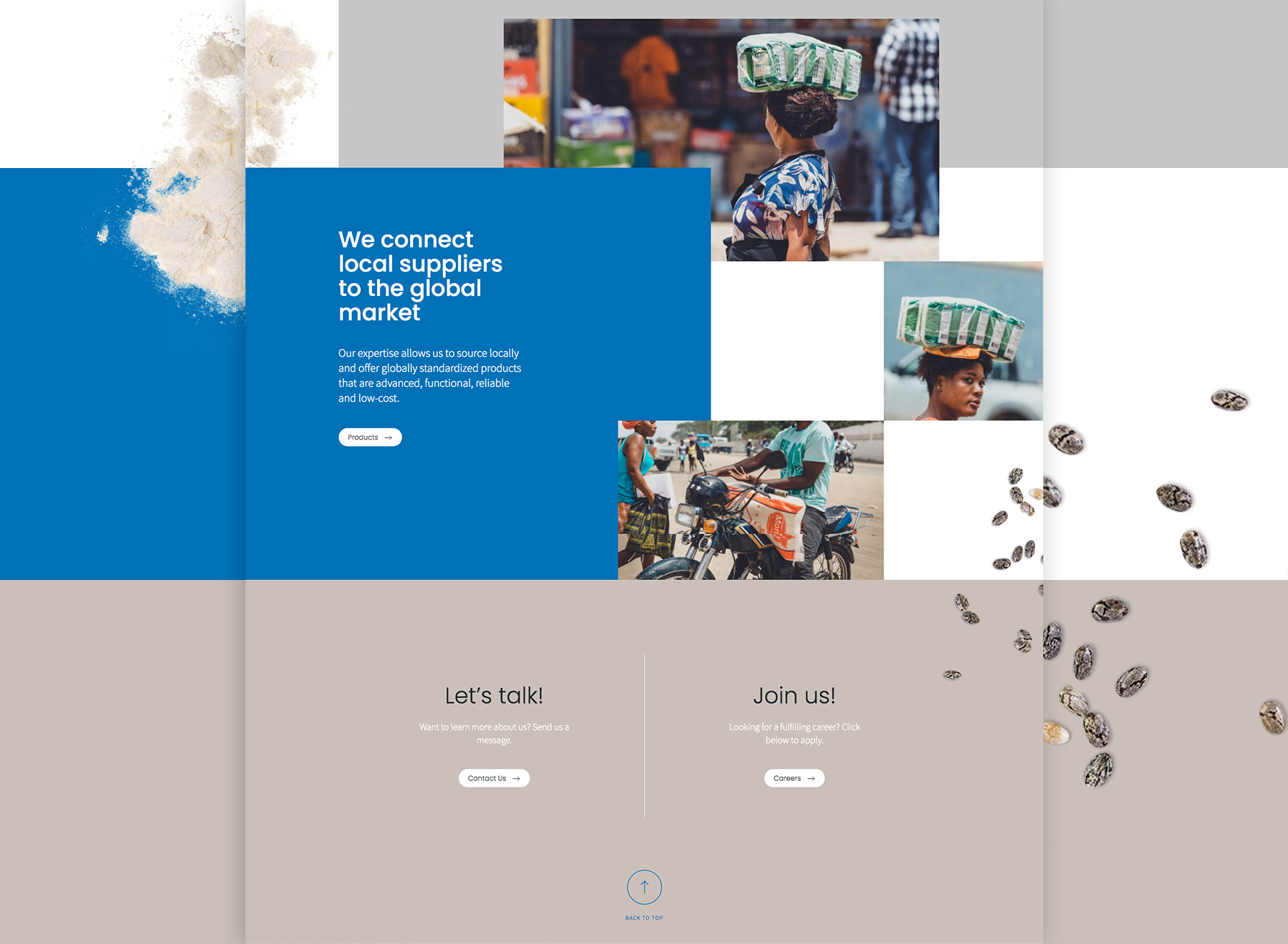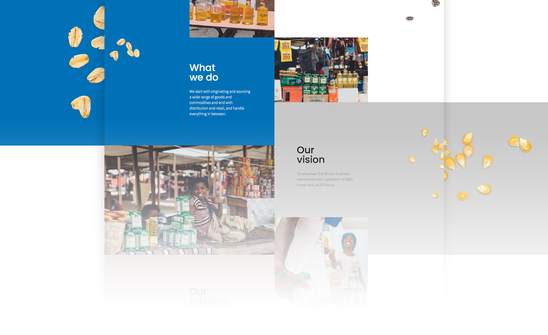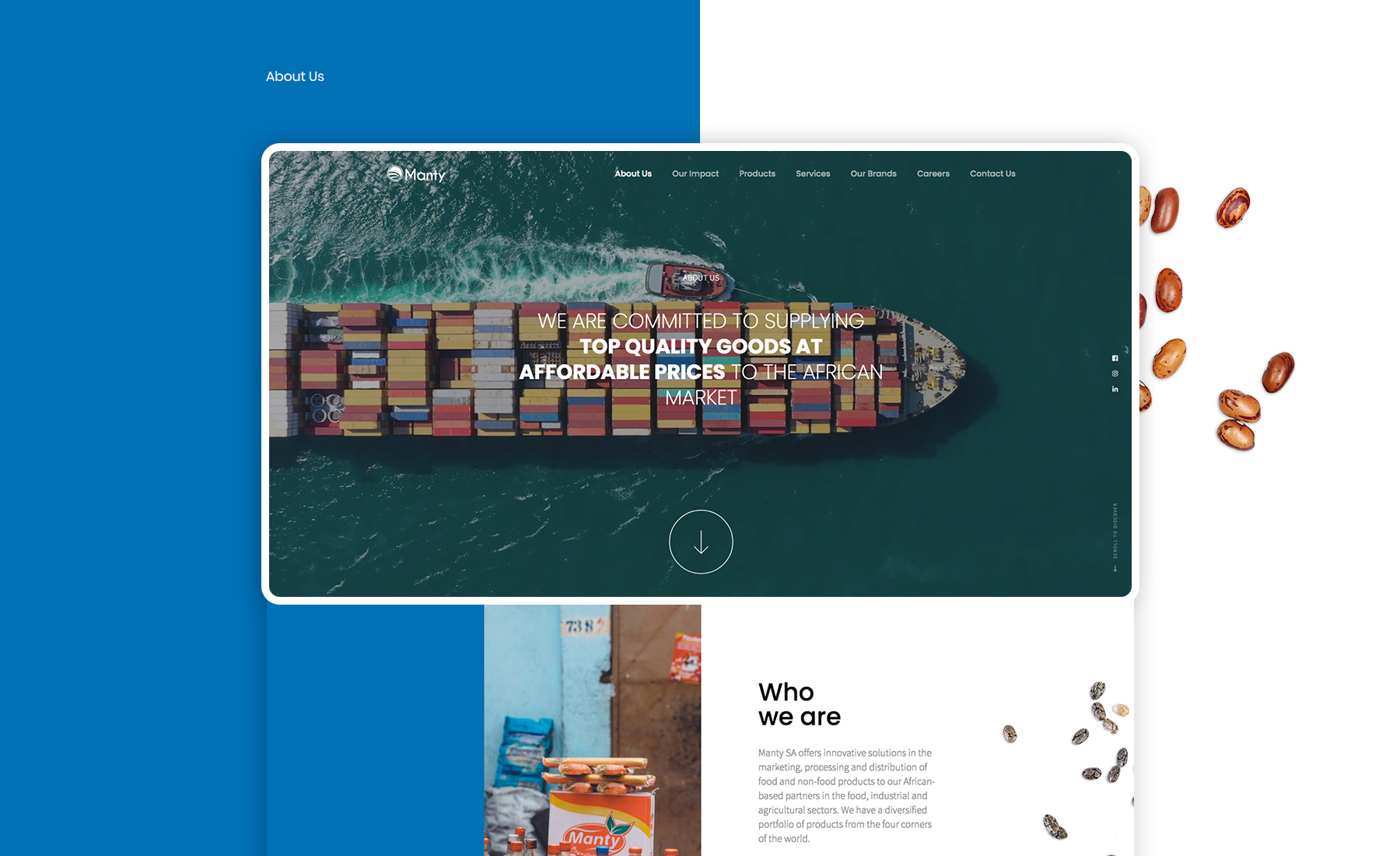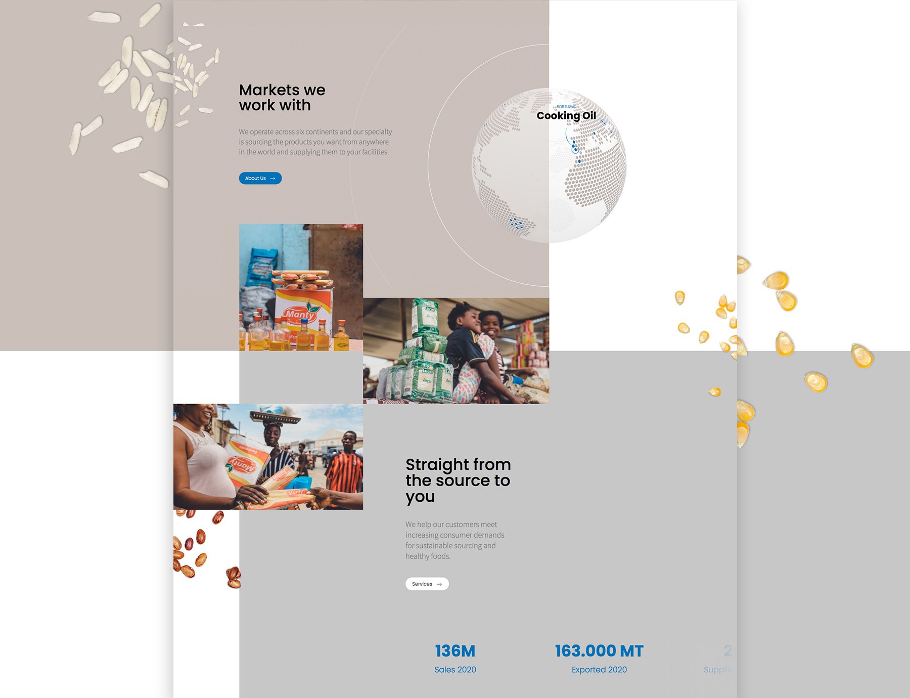 Desenvolvimento de um site para uma marca internacional do mercado da distribuição de produtos para África. Pretendia-se que este fosse de navegação simples e directa e que a comunicação se apresentasse de forma visualmente atrativa e dinâmica. De cores fortes e contrastantes, sem desrespeitar a seriedade da marca, o site recorre à utilização de imagens reais e de vídeos, conferindo uma abordagem impactante desde o início da navegação. Apostando na simplicidade, os detalhes de animação e interação enriquecem a experiência do navegador, suscitando a curiosidade sobre a informação.