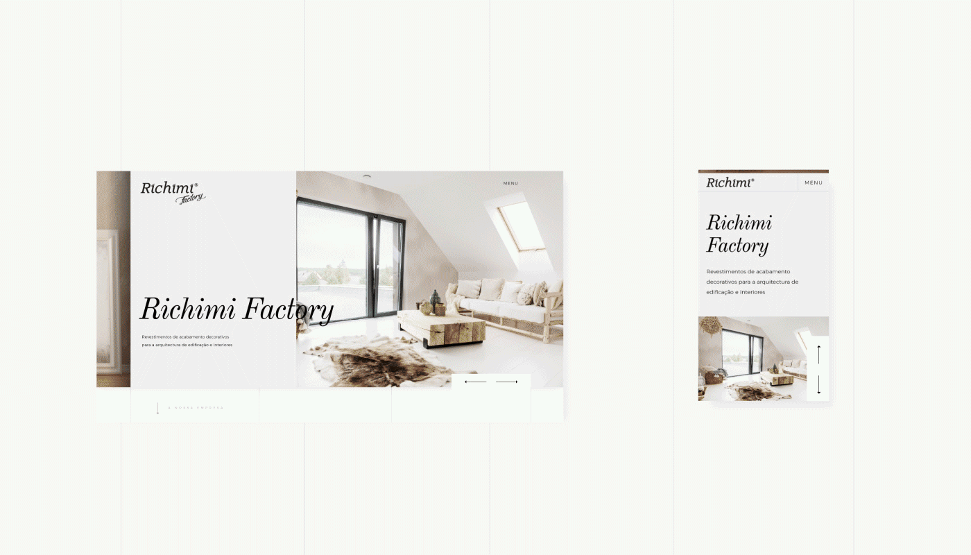 Richimi Factory Website responsivo – ajustado a todos os dispositivos. Apesar da preocupação constante com a usabilidade criaram-se espaços de navegação disruptivos. VISITE O SITE richimi.pt