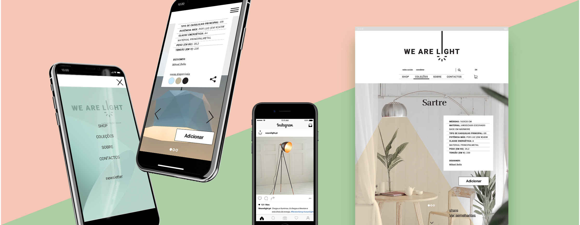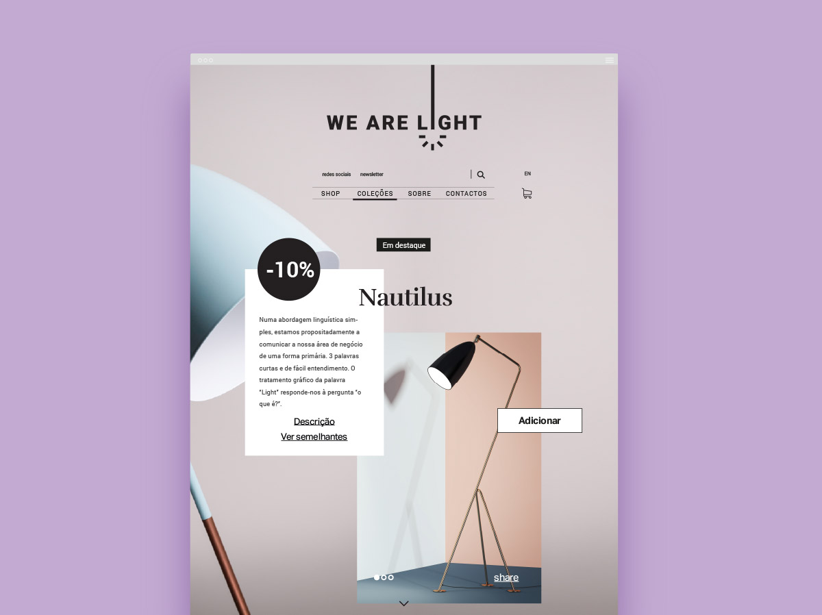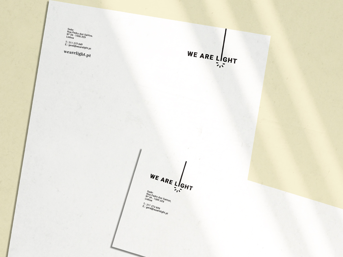 Abordagem linguística simples, estamos propositadamente a comunicar a área de negócio de uma forma primária. 3 palavras curtas e de fácil entendimento. O tratamento gráfico da palavra “Light” responde-nos à pergunta “o que é?”. No entanto ao analisarmos bem a frase “nós somos luz” estamos a conferir uma nova dimensão e profundidade. Não vendemos simplesmente objectos que nos proporcionam luz, mas somos parte integrante dele. Este discurso promete dedicação e compromisso.